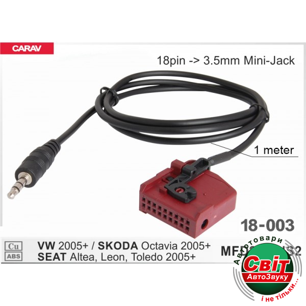 Кабель адаптер AUX Carav 18-003 Volkswagen, SkodaКабель адаптер AUX Volkswagen, Skoda Carav 18-003 для подключения аудио плеера, навигатора, cd-чейнджера, DVD проигрывателя и любого другого аудио устройства к штатной магнитоле.