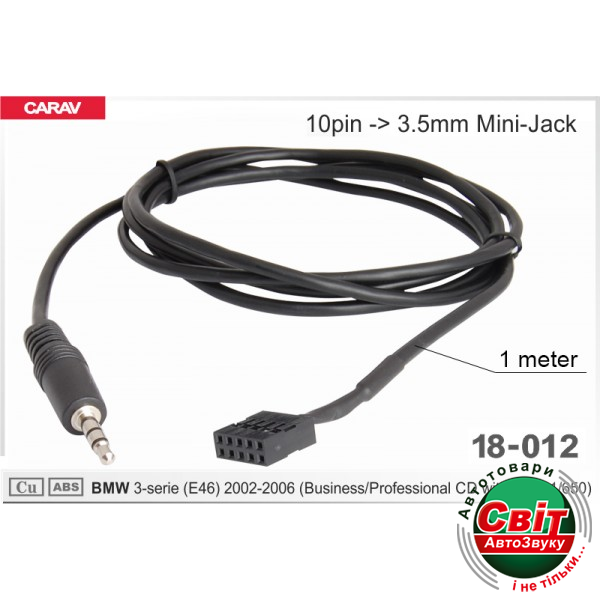 Кабель адаптер AUX Carav 18-012 BMW 3, E46Кабель адаптер AUX BMW 3, E46 Carav 18-012 для підключення аудіо плеєра, навігатора, cd-чейнджера, DVD програвача і будь-якого іншого аудіо пристрою до штатної магнітоли.