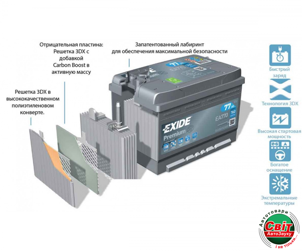 Акумулятор Exide Premium 6СТ-75 АЗИЯ (EA755)Компания Exide Technologies является лидером среди передовых технологий аккумуляторных батарей. Научные центры в городах Европы стремительно развивают качество производимых АКБ, выводя компанию в лидеры данной сферы. Инженеры компании всегда находятся в авангарде новых технологий. Вся продукция данного производителя соответствует нормам ISO/TS, благодаря этому аккумуляторы Exide завоевали доверие среди широкого круга покупателей. Процесс изготовления аккумуляторов соответствует экологическим стандартами и практически не причиняет вреда внешней среде.