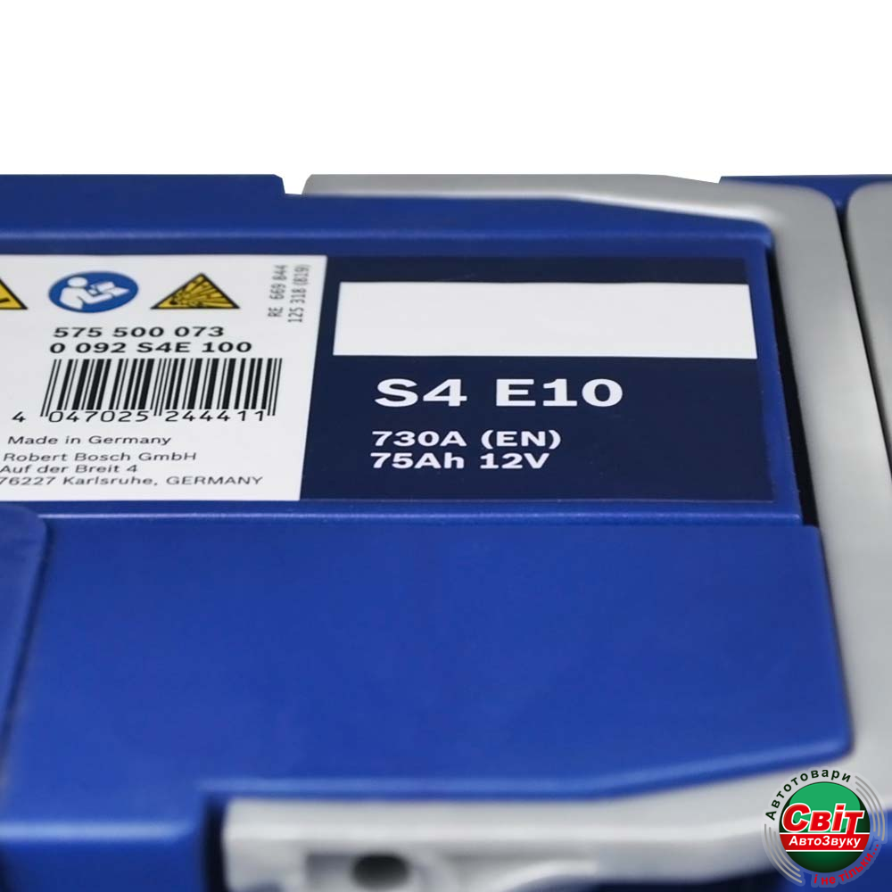 - ›Акумулятор BOSCH EFB (S4E 100) (LB4) 75Ah 730A R+ (h=175) (0092S4E100)