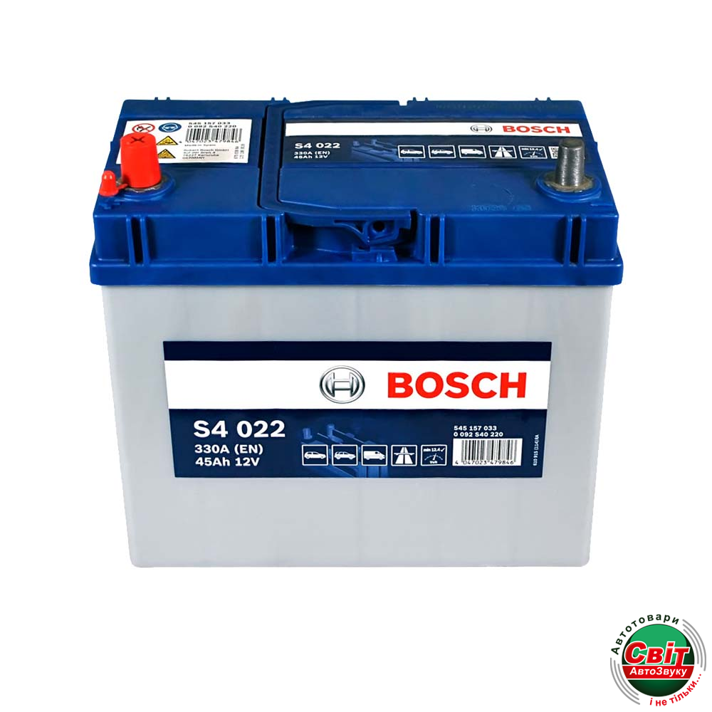 - ›Акумулятор BOSCH (S40 220) (B24) Asia 45Ah 330A L+ т.к. (0092S40220)