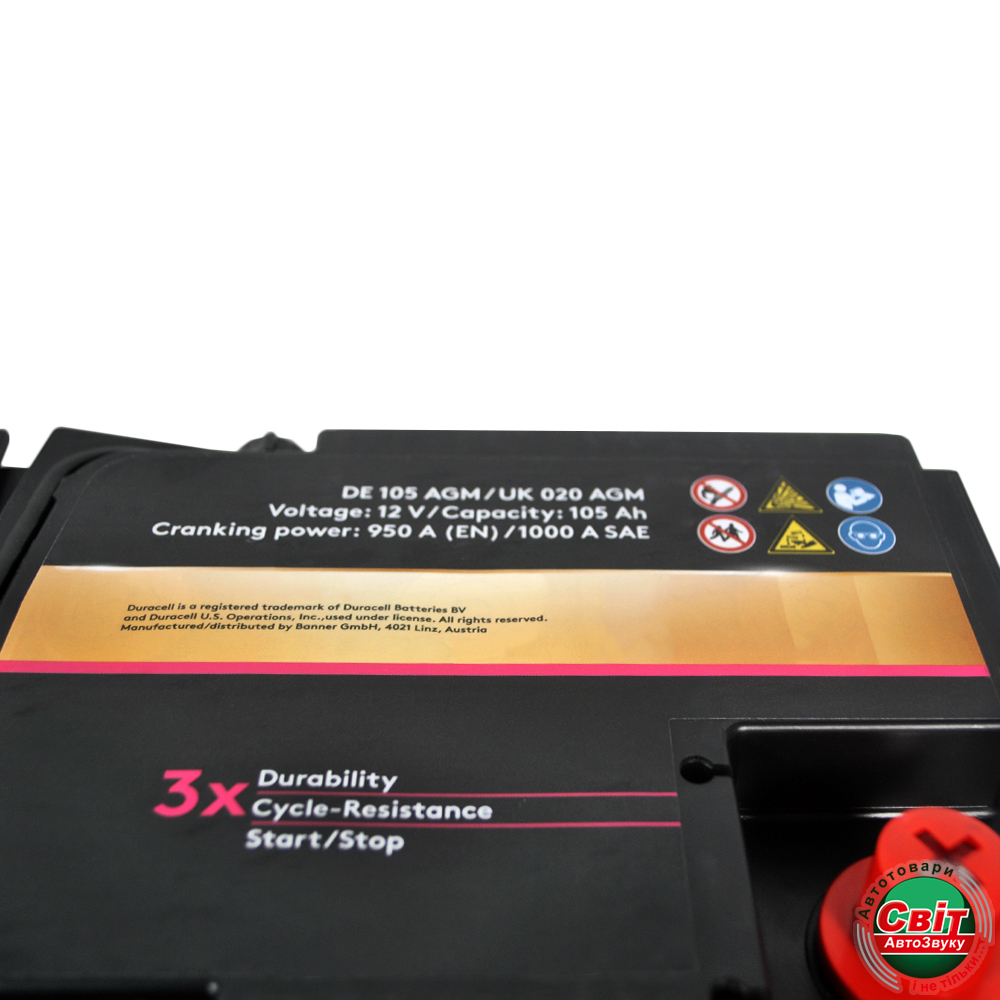 - ›Акумулятор DURACELL Extreme AGM 105Ah 950A R+ (L6)