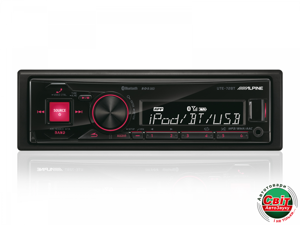 Автомагнітола Alpine UTE-72BTЭтот Цифровой медиа-ресивер с BLUETOOTH® высшего класса обеспечивает превосходное качество звука и удобство встроенной беспроводной технологии Bluetooth Plus. UTE-72BT Цифровой медиа-ресивер предлагающий вам именно то, что нужно. Прослушивайте музыкальные файлы с вашего iPhone® или iPod ® через USB (кабель продается отдельно) и управляйте воспроизведением музыки и функциями поиска прямо с головного устройства. Также Вы можете переключиться в режим прямого управления и контроля воспроизведением с iPod® и iPhone ® напрямую. Режим App Direct позволяет вам наслаждаться звуком через любое приложения iPhone через динамики автомобиля во время зарядки телефона - очень удобно для интернет-радио или навигационной программы. Используйте кнопку голосового управления, чтобы активировать Siri на iPhone 4S / iPhone 5 для управления воспроизведением музыки и совершением звонков. Это работает и для телефонов Android с функцией голосового управления. Качество звука повышается за счет уникальной технологии MediaXpander, особенно для сжатых форматов, таких как MP3. Удобный USB порт и 3,5-мм дополнительный AUX вход на передней панели позволяют легко подключить USB-устройств хранения данных или MP3-плеер. Данный аппарат не оснащен оптическим приводом CD.