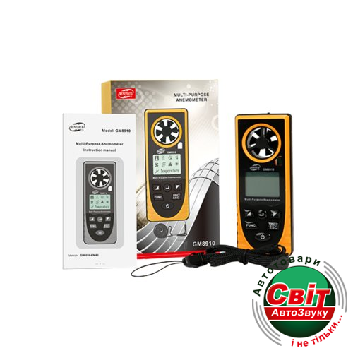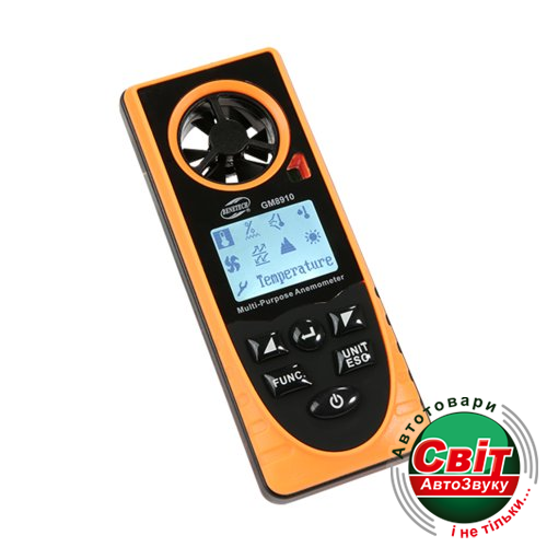 Многофункциональный анемометр-метеостанция Benetech GM8910 8 в 1 предназначена для путешественников, рыболовов, яхтсменов, альпинистов. Кроме того может быть использована садоводами, строителями и в лабораториях. Благодаря высокоточным внутренним датчикам анемометр-метеостанция Benetech GM8910 показывает: температуру, атмосферное давление, высоту над уровнем моря, влажность, скорость ветра, точку росы, температуру ветра и освещённость.