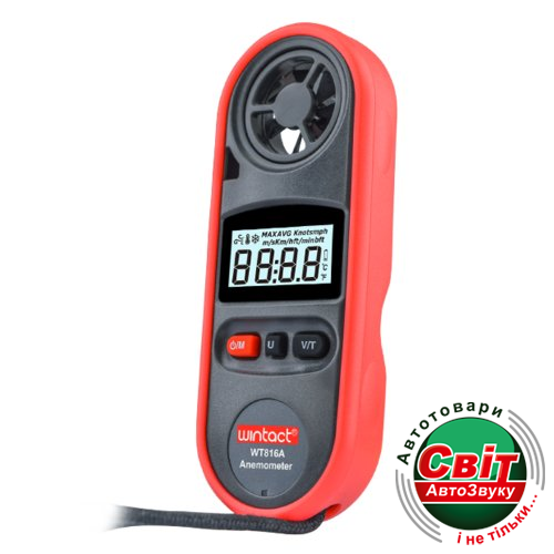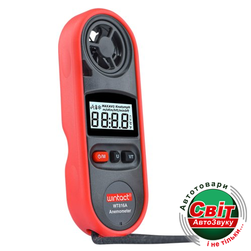 Анемометр Wintact WT816AWT816A крильчатий анемометр виробництва компанії Wintact, призначений для вимірювання швидкості повітря в діапазоні від 0 до 30 м/с з функцією обчислення середнього значення, утриманням максимального і поточного значень. Вимірювання температури виконується в діапазоні від -10 до 45 #186;C.