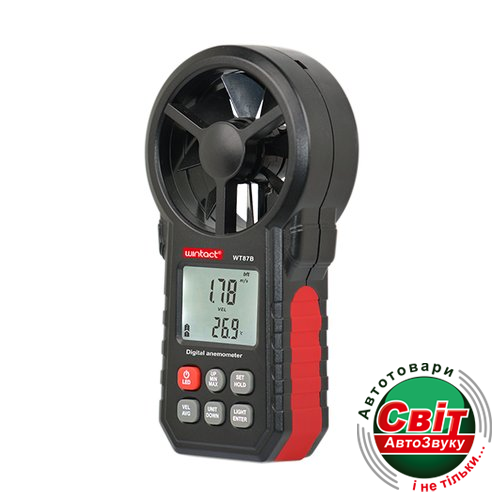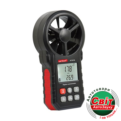 Анемометр Wintact WT87BЦифровой анемометр Wintact WT87B предназначен для измерения скорости ветра и объема проходящего воздуха. Благодаря крупной крыльчатке Wintact WT87B способен с высокой точностью измерять скорость воздушного потока на низких скоростях. Отличительной особенностью данной модели является очень чувствительная крыльчатка на подшипниковом механизме (у большинства бюджетных моделей анемометров крыльчатка вращается в масле, в связи с чем при отрицательных температурах у таких анемометров резко падает точность).