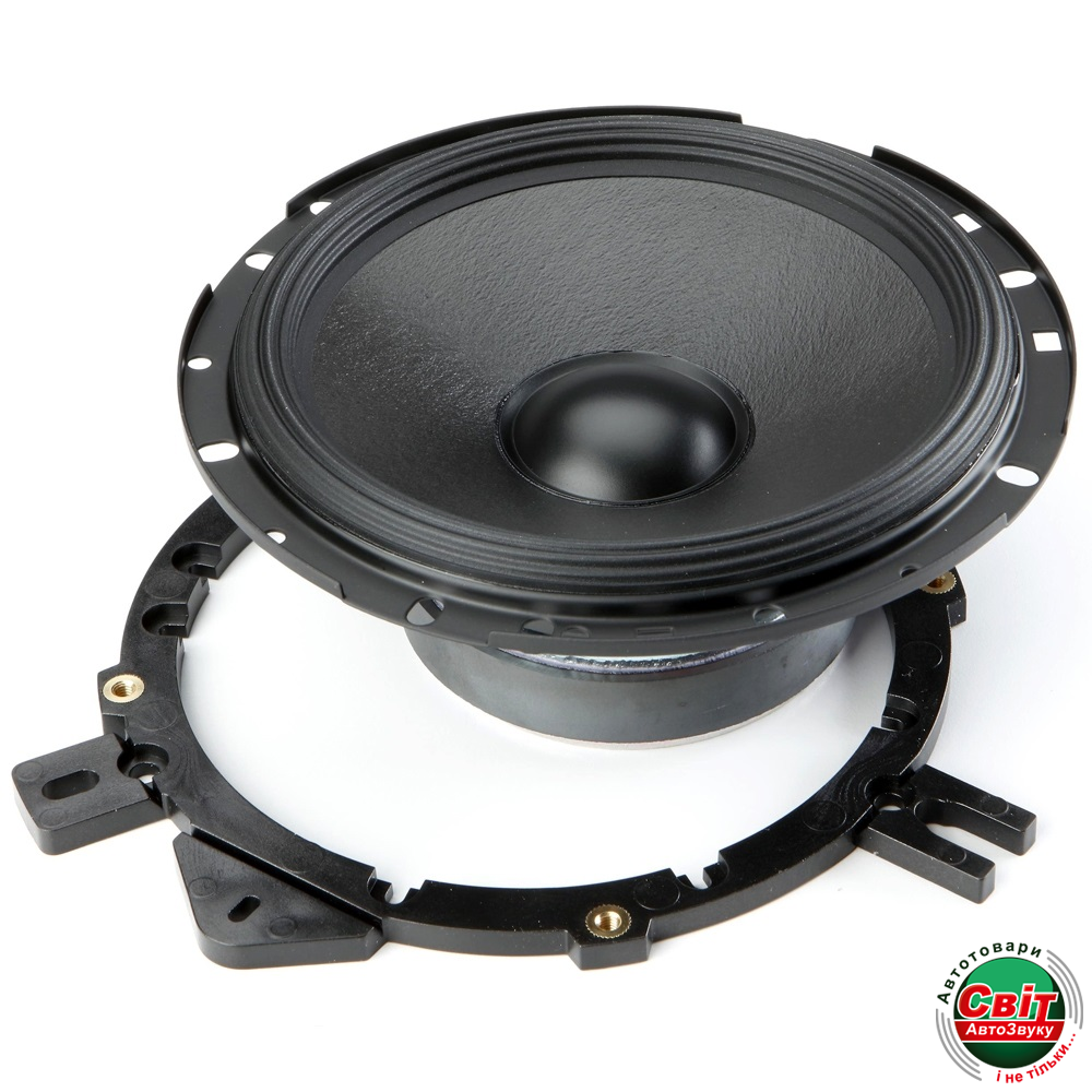 Кошик низькочастотного динаміка сталевий штампований, має круглу форму з типорозміром 6.5 дюймів, це 165 мм. Вони з неодимовим магнітом, надвисокої щільності, він потужний і завдяки своїм компактним розмірам, динаміки мають не велику встановлену глибину. Для дифузора використовують матеріал CFRP (Carbon Fiber Reinforced Plastic), це пластик посилений вуглеволокном, який має ідеальний баланс твердості й легковажності для надзвичайно чистого і точного звуку, з рівномірною жорсткістю по всьому дифузору. Підвіс виготовлений за технологією HAMR, з високим ходом дифузора із збереженням максимальної керованості. Завдяки цьому динаміки видають потужний бас, і, отже, енергійне і захоплююче звучання.