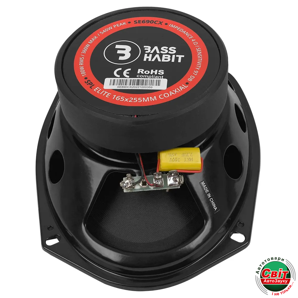 Автоакустика BassHabit SE690CX (шт)Bass Habit SPL Elite SE690CX - це жорсткий 6x9" повнодіапазонний динамік з важким звуком і розумною ціною. Компанія Bass Habit випустила справді грайливий динамік, який в усіх відношеннях заслуговує на звання "SPL Elite". Поєднання середньочастотного/середньочастотного динаміка з непресованим паперовим дифузором і підвісом M-Roll Cloth, а також масивний 25-мм титановий твітер дають змогу з упевненістю сказати, що SE690CX дає змогу легко створити звукову структуру, яку гарантовано буде почуто.