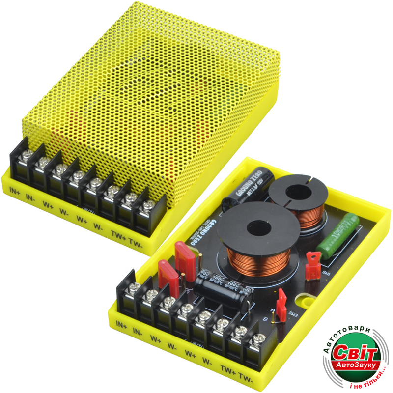 - Кросовер: 2-смуговий з подвійним низькочастотним динаміком