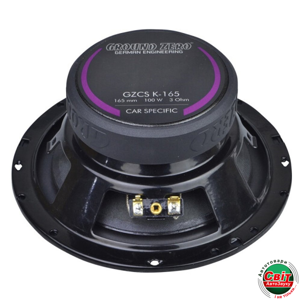 Мідбас GZCS K-165VW оснащений 38-міліметровою звуковою котушкою і феритовим магнітом. Ці компоненти забезпечують точне і динамічне відтворення низьких і середніх частот. Кошик виготовлено зі штампованої сталі, забезпечуючи міцність і надійність.