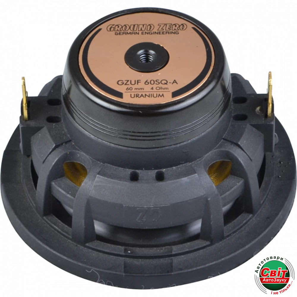 Автоакустика Ground Zero GZUF 60SQ-AGround Zero GZUF 60SQ-A - 72 мм середньочастотники серії Uranium. Високоефективні неодимові магніти. Доорзина з композитних матеріалів. Дифузор з анодованого алюмінію. Потужність: 50 Вт (номінальна), 80 Вт (максимальна). Чутливість: 84 дБ. Середньочастотники з дуже вираженим, динамічним та яскравим характером.