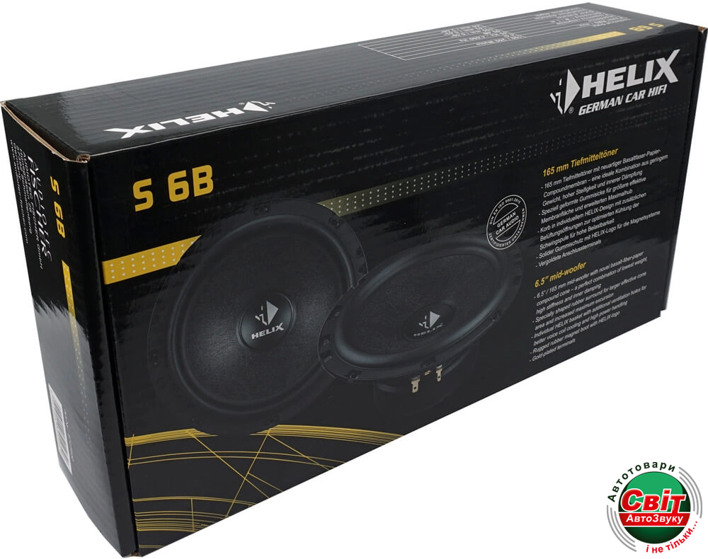 Автоакустика Helix S 6BМідвуфер Helix S 6B – справжня знахідка для поціновувачів якісного, деталізованого звучання середніх і низьких частот. Фірмові рішення Хелікс дозволили зберігати гладкість АЧХ для насолоди всією багатогранністю улюблених композицій абсолютно різних жанрів.