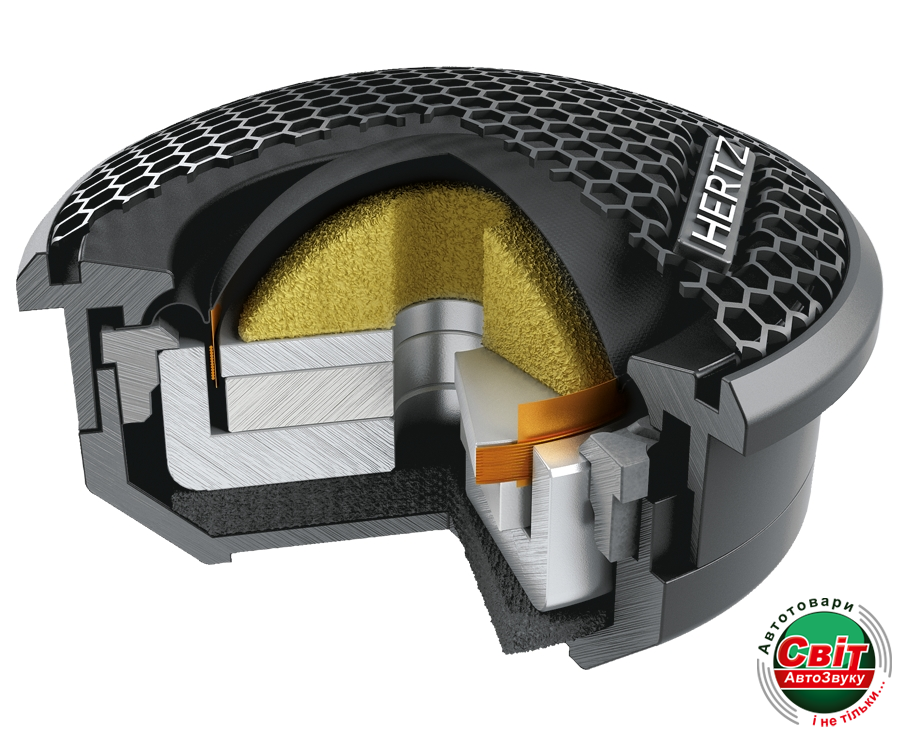Всебічно опрацьована конструкція ВЧ-динаміка з 29-мм куполом по-новому розкриває традиційне для Hertz ясне, відкрите, детальне і неодмінно м'яке за характером звучання. Для всіх компонентів Mille Pro проведена ретельна робота з оптимізації характеристик. MP 25.3 оснащений максимально полегшеним м'яким куполом з матеріалу Tetolon (шовк з особливими просоченнями) збільшеного діаметру, що приносить помітний виграш в ефективності, рівномірності АЧХ і розширенні кута випромінювання.