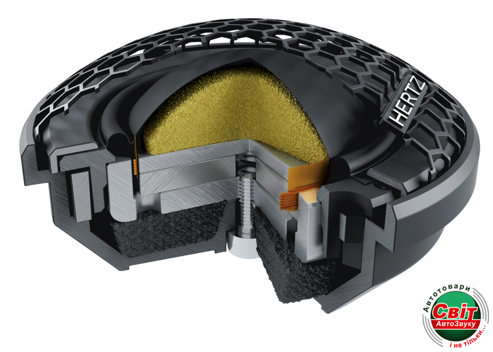 Таким чином можна зменшити точку кросовера між високочастотним і низькочастотними динаміками, покращуючи звуковий образ на приладовій панелі автомобіля. Масивний неодимовий двигун зводить до мінімуму нелінійність, керуючи музичною програмою з дуже динамічними перехідними процесами. Звукова котушка CCAW (мідний алюмінієвий дріт) гарантує особливо легкий вага і жорсткість рухомого вузла. Ці технологічні елементи взаємодіють один з одним, що призводить до розширення діапазону високих частот до 28 кГц, що є рекордом для твітера з 28-міліметрової звуковою котушкою.