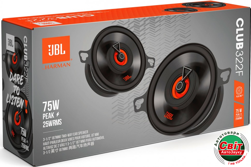 Автомобільна акустика JBL Club 322F входить до професійної серії JBL, яка надає звук преміум-класу більшому числу автомобілів. Завдяки компактному дизайну, ці динаміки можуть бути встановлені в більшому числі автомобілів, ніж багато інших продуктів конкурентів. Висока чутливість забезпечує відмінну продуктивність навіть при роботі з надто потужними заводськими системами.