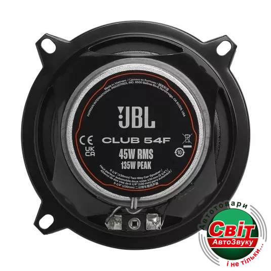 Автоакустика JBL Club 54FJBL Club 54F представляє собою пару коаксіальних автомобільних гучномовців, які відзначаються компактним дизайном, дозволяючи їм поміститися в більшість автомобілів. Гучномовці оснащені технологією Edge-driven Silk Dome Tweeter, яка забезпечує ширший і гладший відгук на високих частотах без будь-якої жорсткості, незалежно від рівня виводу, в порівнянні з більш поширеними w-домами. Конус цих гучномовців виготовлений з акустично затухаючого та ультрафіолетового поліпропілену, який є стійким до ультрафіолетового випромінювання.