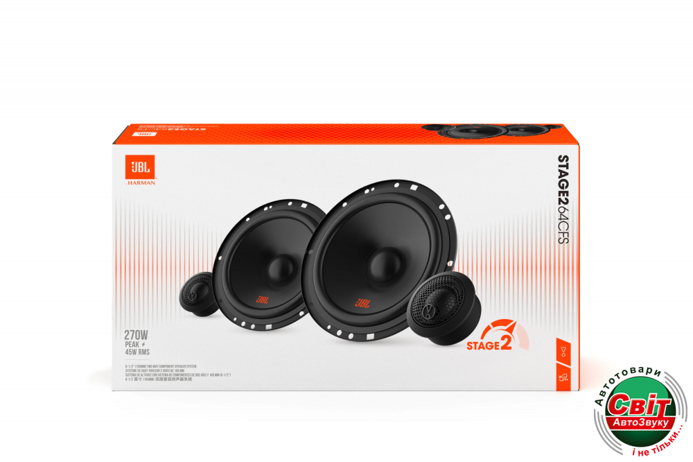 Автоакустика JBL Stage2 64CFSJBL STAGE2 64CFS – це вигідний та ефективний апгрейд для штатної акустичної системи вашого автомобіля, що забезпечує відмінну якість звуку JBL за доступною ціною. Динаміки серії Stage2 приносять вам концертний досвід JBL у ваш автомобіль, вантажівку або SUV. Поліпропіленовий вуфер забезпечує відмінну продуктивність з хорошим розширенням низьких частот та чистим, чітким середнім діапазоном. Вуфер доповнений купольним твіттером з балансованим PEI, що додає їх звуковій підписці чіткі високочастотні частоти.