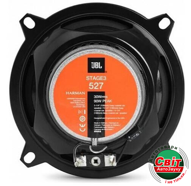 Автоакустика JBL Stage3 527FJBL Stage3 527 - це 2-смугова коаксіальна акустична система серії Stage3 з сучасним дизайном, хорошим збалансованим звучанням і поліпшеними технічними характеристиками. Вона забезпечить високу продуктивність і чудово підходять для заміни більшості заводських систем. Конструкція досить проста в установці і ставитися в штатні місця, при цьому необхідно звернути увагу на монтажні розміри, що б не виникло проблем зі склопідйомниками і обшивкою дверей (установчий діаметр 120 мм, глибина 45 мм).