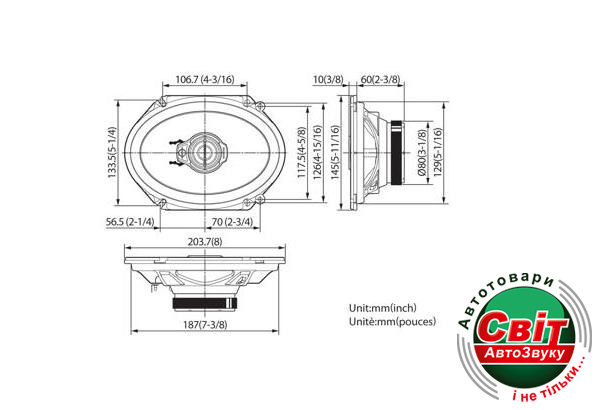 - Розмір динаміка: 6 "x 8"