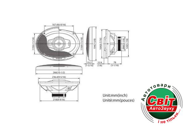 - Размер динамика: 6 "x9"