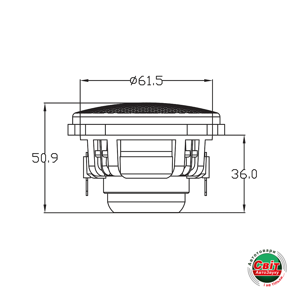 - Розмір високочастотного динаміка: 3.4#8243;(87мм) з неодимовим магнітом