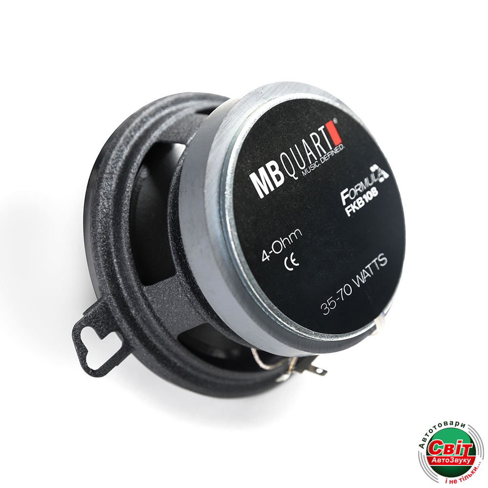Коаксіальна двосмугова акустика від бренду MBQuart моделі FKB108 необхідна для того, щоб забезпечити хорошим збалансованим звучанням у транспортному засобі. Чудово підходить для заміни заводських систем акустики, оскільки забезпечує високу продуктивність. Має розмір 3.5 дюймів. У цих коаксіальних системах використовуються якісні неодимові магніти, міцні дифузори, що надають потужності та якості звучання в діапазоні від 80 Гц до 20000 Гц. Номінальна потужність дорівнює 35 Вт, при цьому максимальна 70 Вт. Всі ці характеристики дають гарне, а головне збалансоване звучання, при цьому сама модель має сучасний дизайн виконання. Дуже проста під час установки, стає легкою заміною в штатні місця акустики. Для того щоб не виникало проблем з установкою, потрібно підібрати необхідний монтажний розмір. Має чудову стійкість до вібрацій, оскільки кошик динаміка цієї моделі металевий, штампований. Серед особливостей і переваг, які варто відзначити, є великий запас гучності, широкий діапазон частот, виготовлений з високоякісних матеріалів.