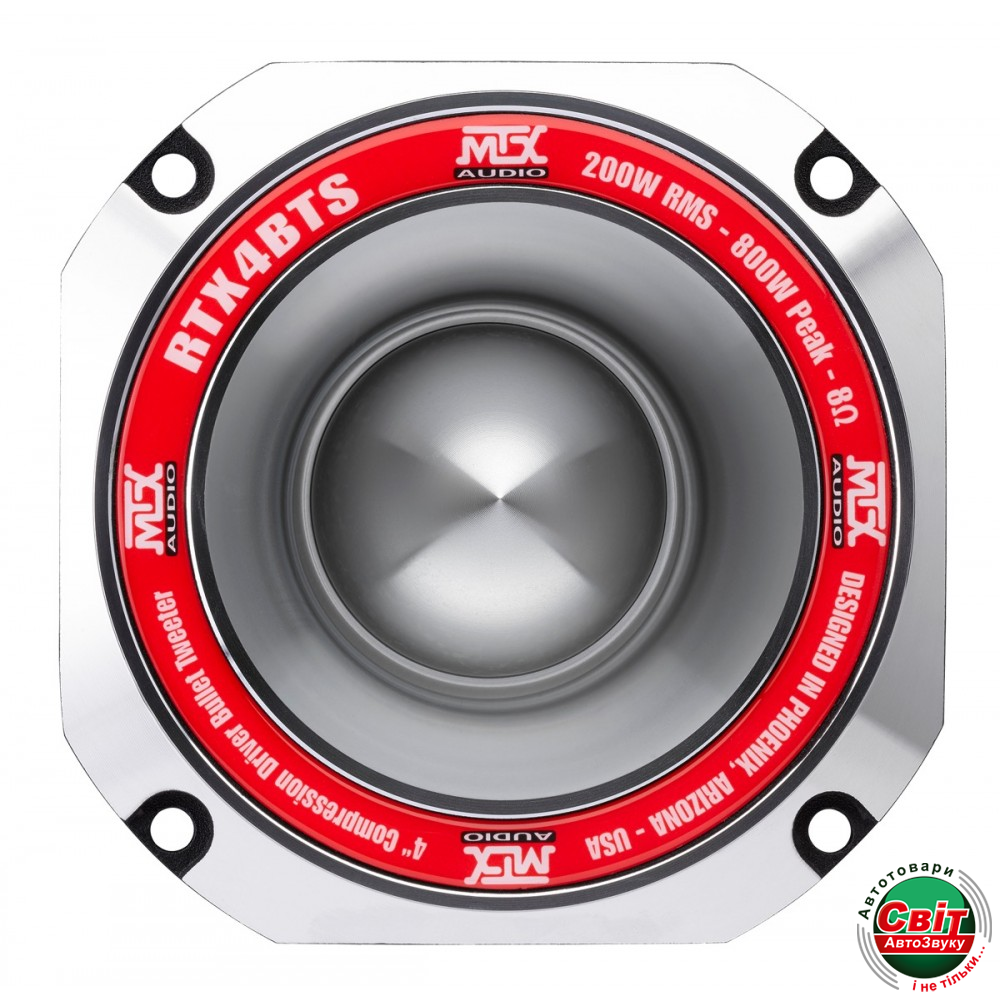 Автоакустика MTX RTX4BTSТвітер рупорний MTX RTX4BTs – це високоефективний твітер. Маючи невелику потужність, він видає багато звуку. Він призначений для інсталяцій типу SQL та акустичних систем з відчиненими дверима. Звук потужний та дуже живий. Для роботи він має бути підключений до середнього діапазону RTX654 чи RTX84. Він поставляється з конденсатором для фільтрації та захисту. Але ви також можете використовувати його активним переходом. Зверніть увагу, що RTX4BT продаються поштучно. Так що вам потрібно два зробити стерео.