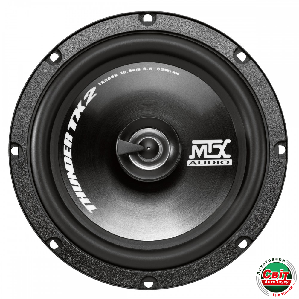 Автоакустика MTX TX265CКоаксіальна акустика MTX TX265C (6,5-дюймова 2-смугова коаксіальна, 65 Вт RMS, пікова потужність 450 Вт) відрізняється якістю звуку, дуже високою потужністю та винятковим оздобленням.