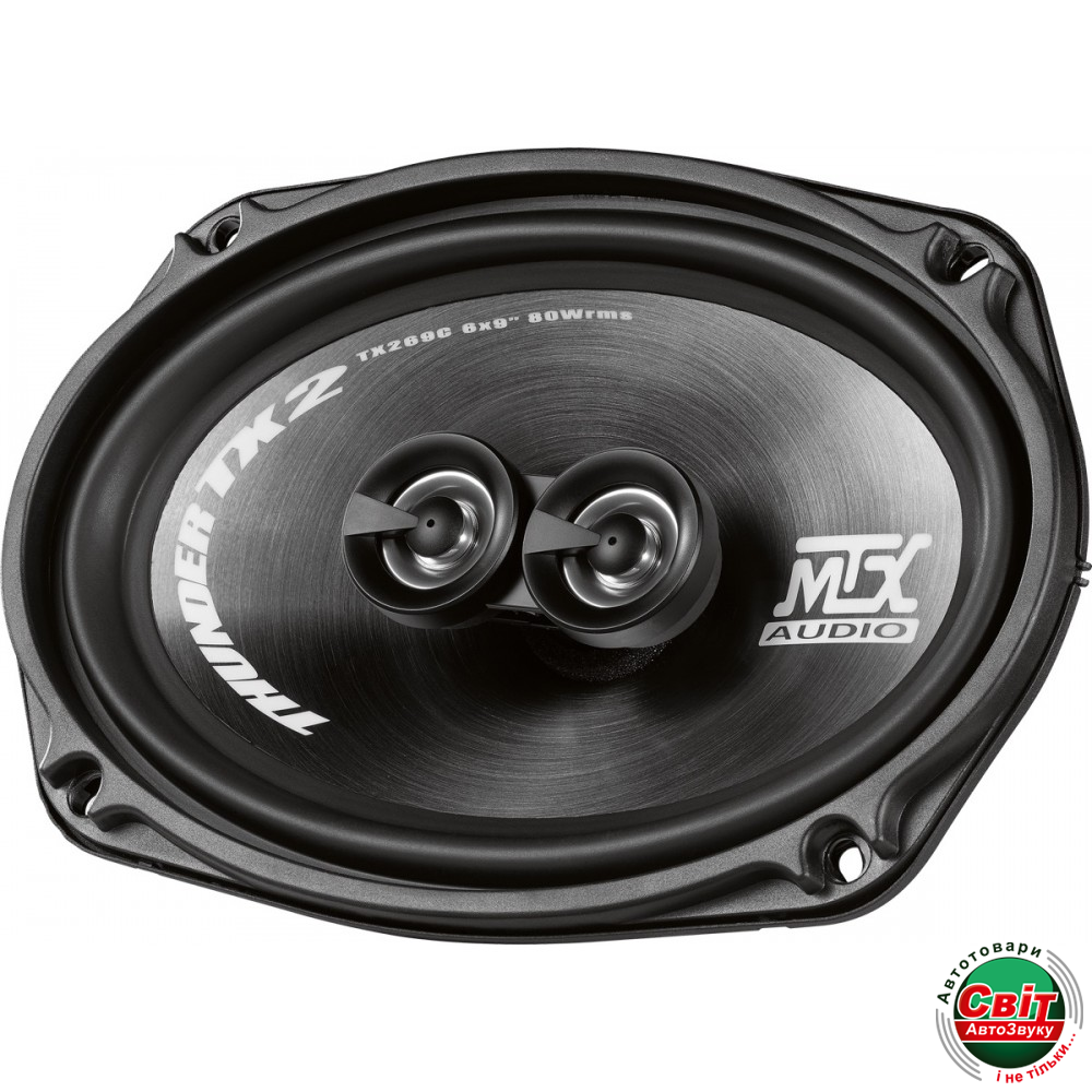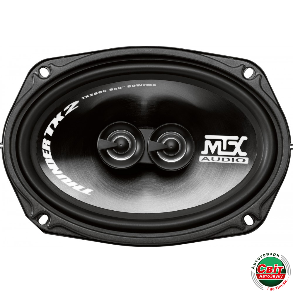 Автоакустика MTX TX269CКоаксіальна акустика MTX TX269C (6x9 дюймів, 3-смугова коаксіальна, 80 Вт RMS, 550 Вт пік) відрізняється якістю звуку, дуже високою потужністю та винятковою обробкою. TX269C можна використовувати із сабвуфером з підсилювачем, таким як MTX RTP8, RTP12 або RTF10P для посилення низьких частот.