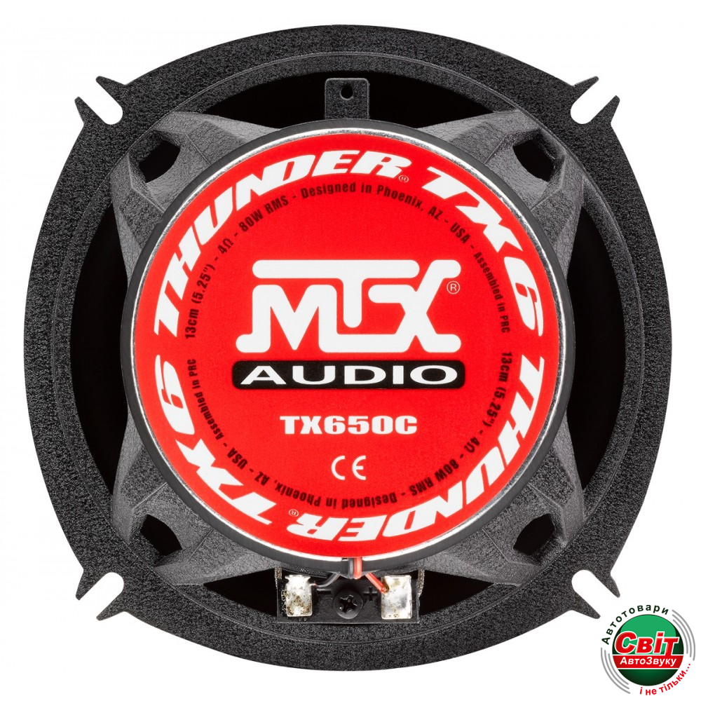 Автоакустика MTX TX650CКоаксіальна акустика MTX TX650C (5,25-дюймова 2-смугова коаксіальна, 4 Ом, 80 Вт, середньоквадратична потужність 555 Вт, пікова) - це високоякісні коаксіальні динаміки. Вони можуть витримувати величезну потужність, і ви не можете уявити якість звуку, яке вони можуть відтворювати. Вони оснащені найкращим: Алюмінієва рама MTX для оптимальної жорсткості, діафрагма з пресованого паперу для більшої музичності, деталізації та тепла, гігантський магніт для неймовірної потужності, дуже велика шпуля з TSV TIL діаметром 30 мм для деталізації на всіх рівнях та керування потужністю завдяки кращому охлу. , неодимовий магніт твітер та шовковий купол діаметром 22 мм для м'якого та динамічного звучання, гумова підвіска, що витримує великі прогини, залишаючись при цьому надійною.