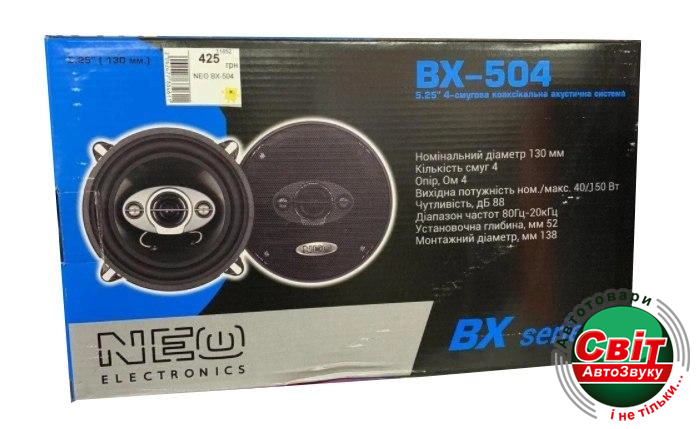 Автоакустика NEO BX-504Автоакустична система NEO BX-504 є відмінним вибором для любителів якісного звуку в автомобілі. Вона забезпечує чистий та потужний звук завдяки своїй чотирьохполосній коаксіальній конструкції.