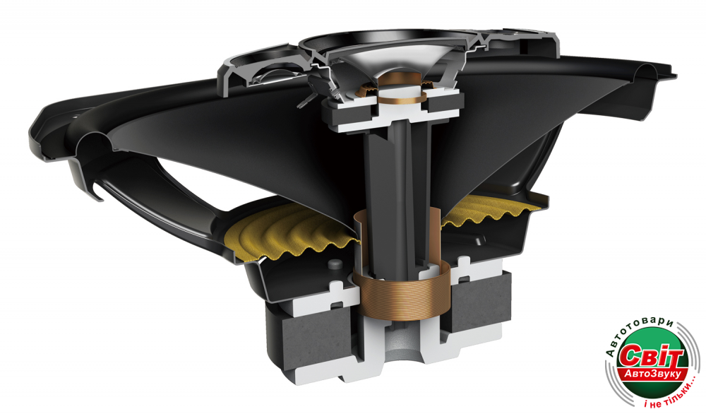 - Матеріал НЧ динаміка Безшовний конус з композитного матеріалу IMPP