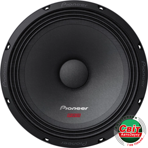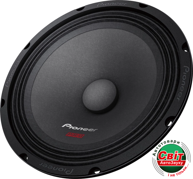 Автоакустика Pioneer TS-M2010PROСередньочастотна акустична система Pioneer TS-M2010PRO серії PRO Shuriken - це високоефективний динамік розміром 20 см з товстим сталевим кошиком і з легким, але жорстким дифузором з целюлози зі спеціальним просоченням, великим феритовим магнітом і алюмінієвою котушкою з котушкою AW. Короткозамкнений виток (OFC) знижує спотворення на середніх та верхніх частотах, компенсує індуктивність котушки та розширює частотний діапазон.