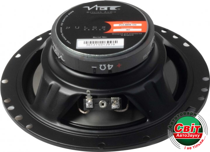 Автоакустика Vibe PULSE6C-V0Автомобільна коаксіальна акустика преміального класу розроблена в Британії і випущена з високоякісних компонентів, завдяки чому існує виняткова якість звуку і великий запас звуку. Динамики Vibe PULSE6-V0 мають унікальні купольні твіти PEI, які гарантують відтворення високих частот у діапазоні понад 20 кГц, а жорсткий поліпропиленовий конус IMP низькочастотного динаміка разом з м'яким і еластичним підвісом забезпечує насичений низький бас для максимального задоволення в процесі прослуховування музики.