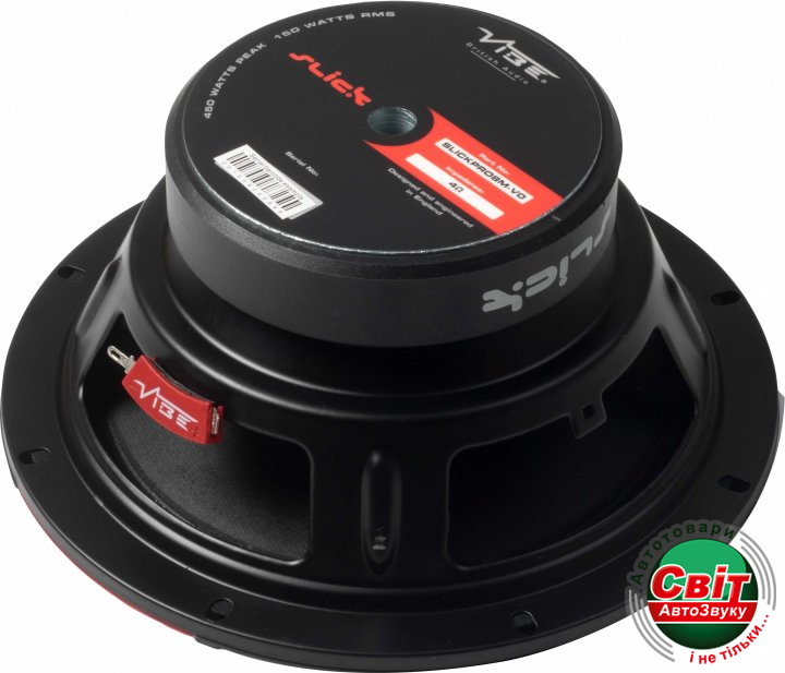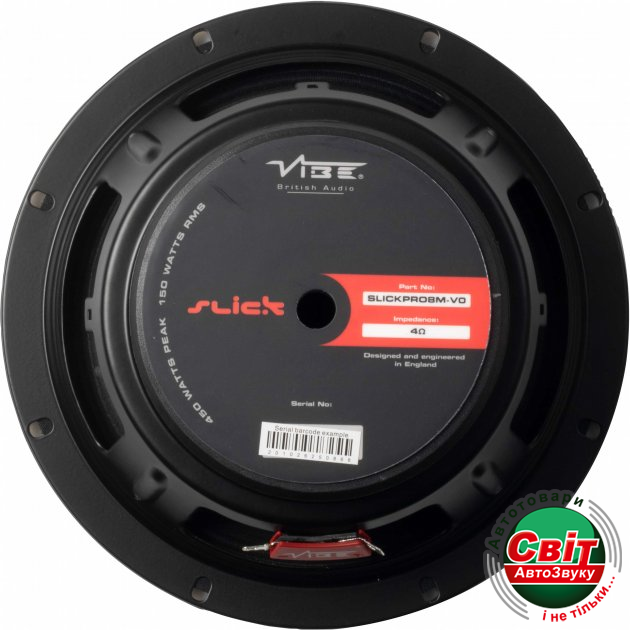 Автоакустика Vibe SLICKPRO8M-V0Це 8.1 -дюймовий середньочастотний динамік, який максимально точно і насичено відтворює середні частоти. Чутливість динаміка: 98 дБ, що є хорошим показником для даного цінового діапазону. Динамік має конусним дифузором з полупрессованой паперу, який ефективно розсіює середні частоти в салоні автомобіля і дає хороше звучання в діапазоні мідбасу. Тканинний підвіс з двома рулонами забезпечує швидке і точне демпфірування дифузора. Технологія BlackHole DustCap збільшує ефективну площу дифузора для більш високої чутливості, створюючи об'ємне звучання.