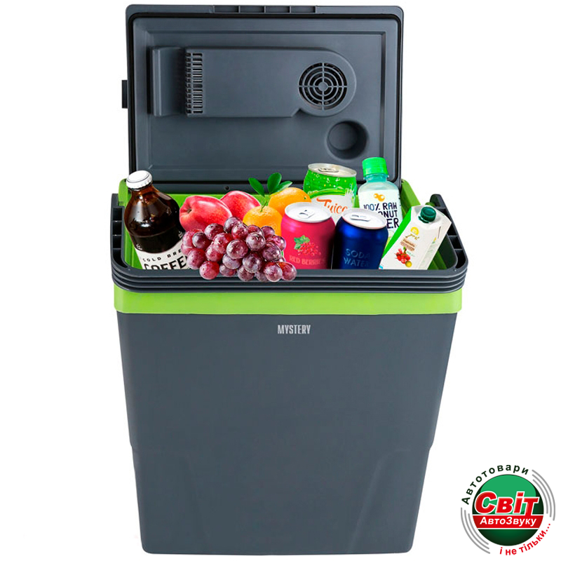 Автохолодильник Mystery MTC-22Термоелектричний холодильник Mystery MTC-22 є гарним помічником для тривалих поїздок, відпочинку на природі, пляжі, а також для полювання та риболовлі пристрій здатний охолоджувати на 18 градусів нижче за температуру довкілля, але не нижче ніж +5 °C, що забезпечує збереження харчових продуктів та напоїв прохолодними. Особливістю пристрою є можливість його використовувати для нагрівання вмісту до +55 градусів. Автохолодильник Mystery MTC-22 зроблений із високоміцного нетоксичного пластику, завдяки чому він є абсолютно безпечним для продуктів і здоров'я людини, а також вирізняється стійкістю до зовнішніх впливів, зокрема ударів і падінь з невеликої висоти.