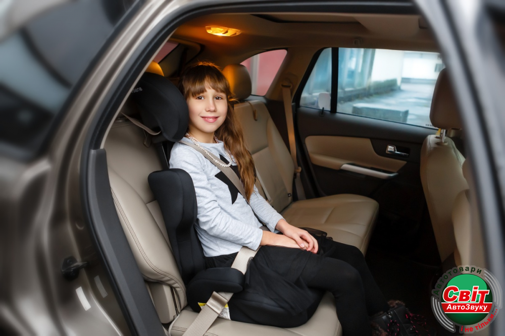 - Дитина фіксується штатним ременем безпеки автомобіля.