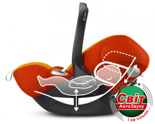 Автокрісло Cloud Q можно наклонить в горизонтальное положение вне автомобиля, в котором ребенку будет удобно и безопасно отдыхать.