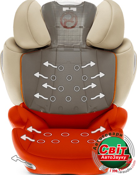 Еще одним структурным элементом комфортного пакета Solution Q2-fix является сетка вентиляционных каналов, которые проходят по спинке и сиденью автокресла. Это обеспечивает комфортную температуру сидения даже в жаркие дни.