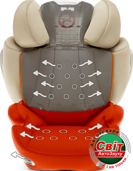Еще одним структурным элементом комфортного пакета Solution Q2-fix является сетка вентиляционных каналов, которые проходят по спинке и сиденью автокресла. Это обеспечивает комфортную температуру сидения даже в жаркие дни.