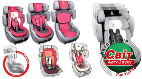 - Устанавливается в автомобиле по ходу движения, крепится штатными ремнями безопасности.