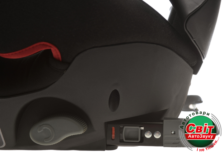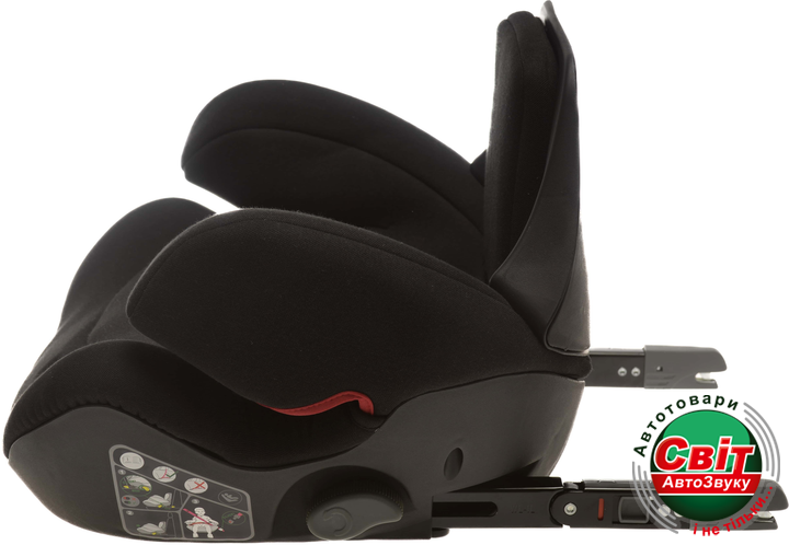 Монтаж в автомобілі: фіксують в автомобілі за допомогою штатного автомобільного ременя безпеки, встановлюють у напрямку руху автомобіля.