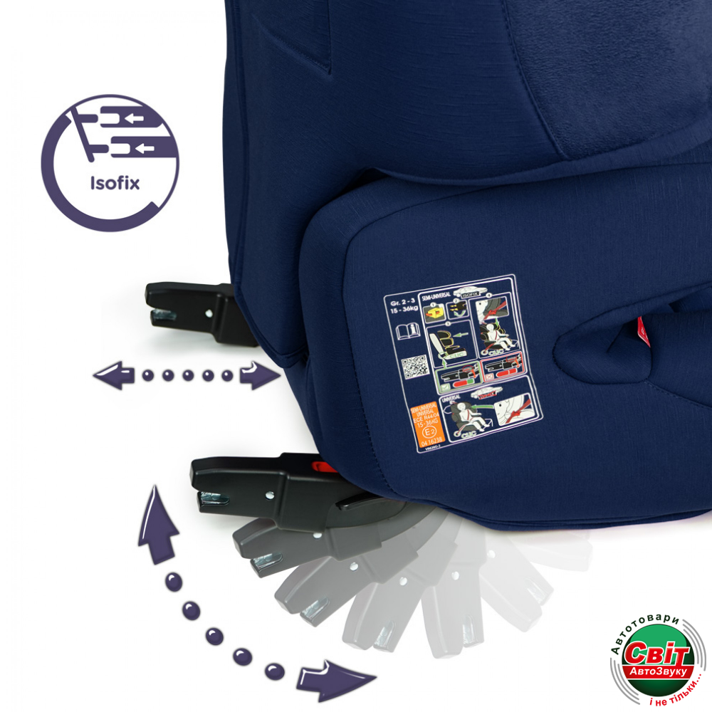 - Фіксація крісла за допомогою системи Isofix та штатних ременів авто;