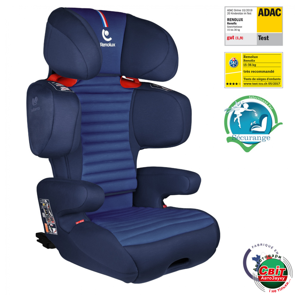 Французьке автокрісло Renolux Renofix, групи 2/3 розраховане на дітей від 3-х до 12 років, вагою від 15 до 36 кг