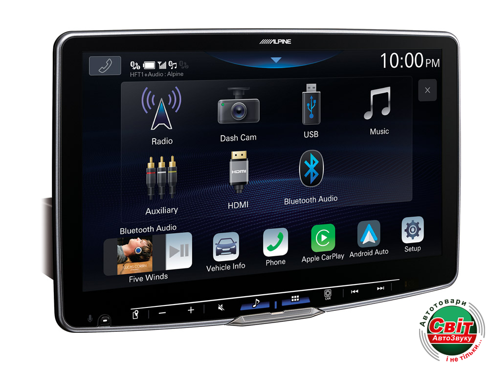 Цифровий тюнер DAB може перемикатися між DAB і FM, що дає змогу вам насолоджуватися плавним прийомом радіо без перерв. Крім розширених форматів відео розваг через USB (MP4, MOV, FLV, MKV), Alpine Halo9 пропонує безліч додаткових можливостей для розваг: онлайн-навігація з додатками Яндекс Навігатор або 2ГІС через Android Auto і Apple CarPlay. додано модуль Bluetooth, що дає змогу передавати потокове аудіо як із вашого телефону, так і через додаток Яндекс Музика в Android Auto і Apple CarPlay. Вхід HDMI дає змогу під'єднувати зовнішній пристрій відтворення відео.