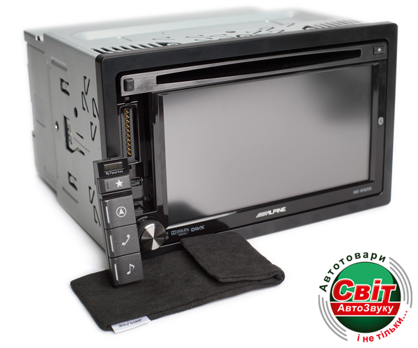 Автомагнітола Alpine INE-W925RРеволюционная система Alpine One Look Navi делает работу с системой гораздо проще и эффективнее. Уникальное разделение экрана 50/50 выводит в два раза больше информации, для более удобной работы системы навигации, iPhone / IPod, Bluetooth, DVD и USB устройств.
