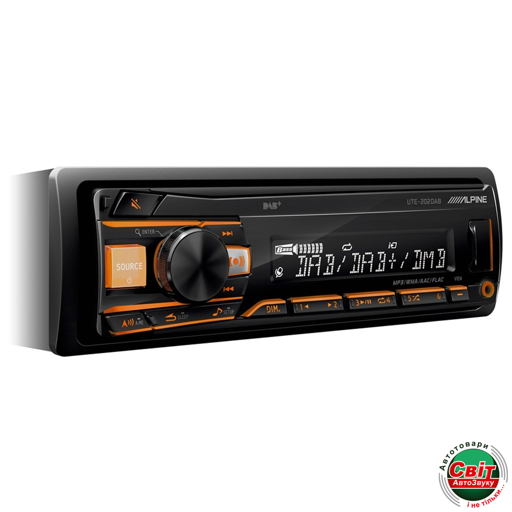 Автомагнітола Alpine UTE-202DABАвтомагнітола Alpine UTE-202DAB - ресивер с высоким качеством звучания, возможностью подключать USB-накопитель или различные устройства (Android, iPhone, iPod) и с цифровым радио. Размер универсальный 1DIN, подходит для всех салонов автомобиля. Панель передняя фиксированная, черного цвета, со стильной изменяемой подсветкой кнопок в полном спектре RGB.
