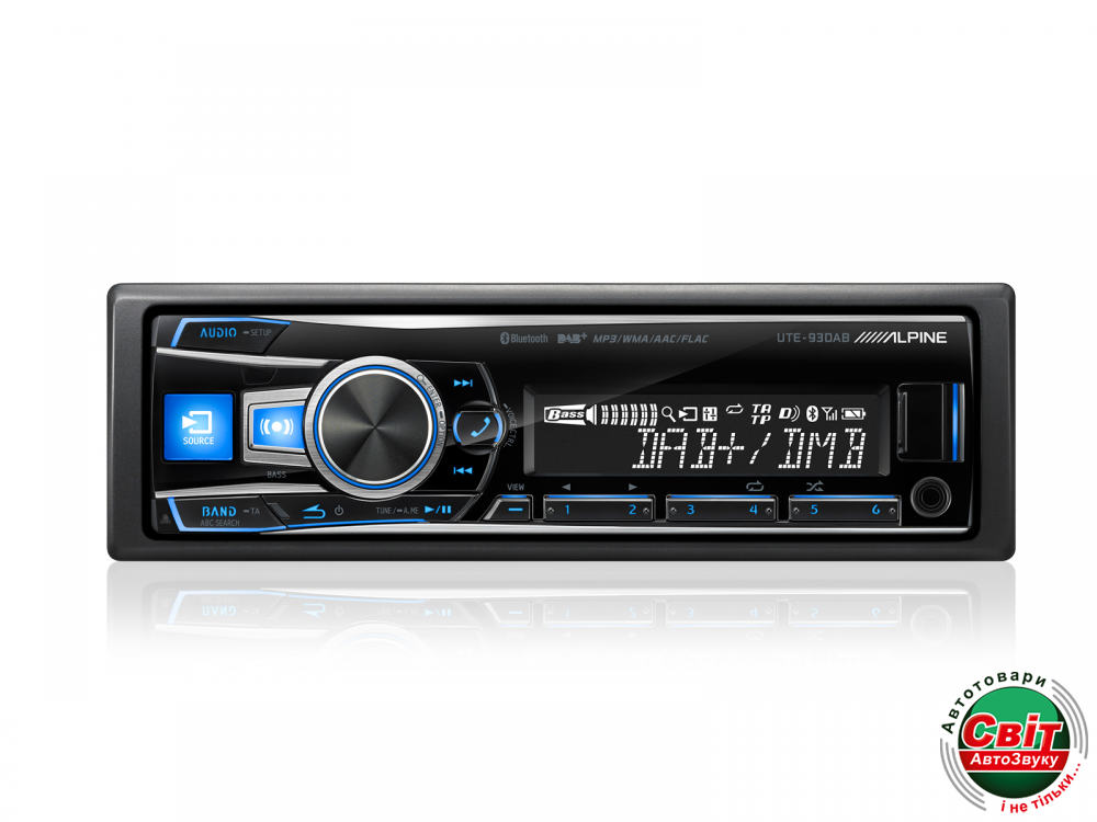 Автомагнітола Alpine UTE-93DABЦифровий медіа-ресивер з модулями DAB І BLUETOOTH, USB, 4х50 Вт, DAB+/DMB тюнер, MP3/WMA/AAC/FLAC, 3 л вих, 24-біт ЦАП