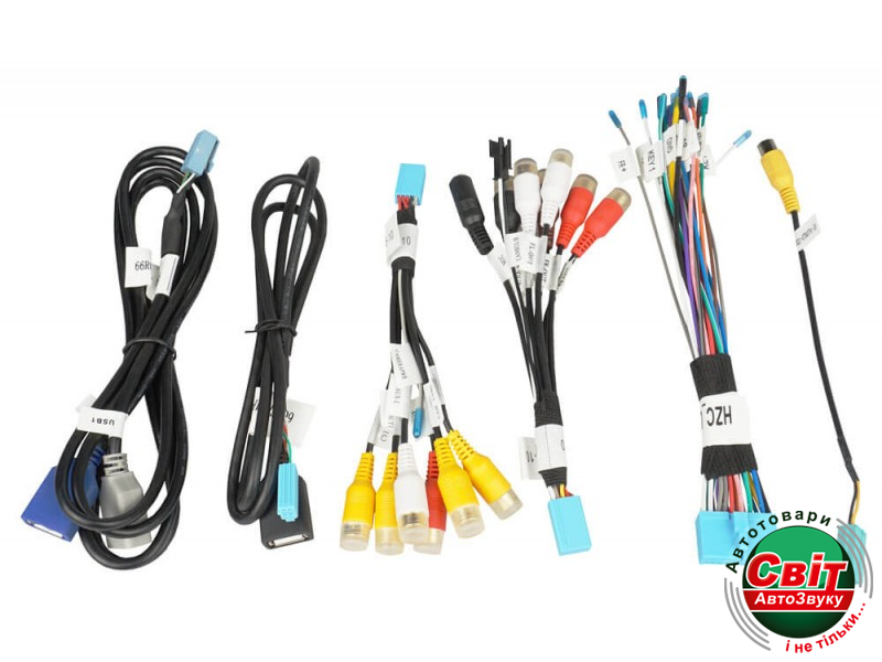 - Видеовыходы: 2RCA разъема на дополнительные мониторы, 1RCA для камеры заднего видаа/системы кругового обзора, 1RCA для камеры переднего вида.