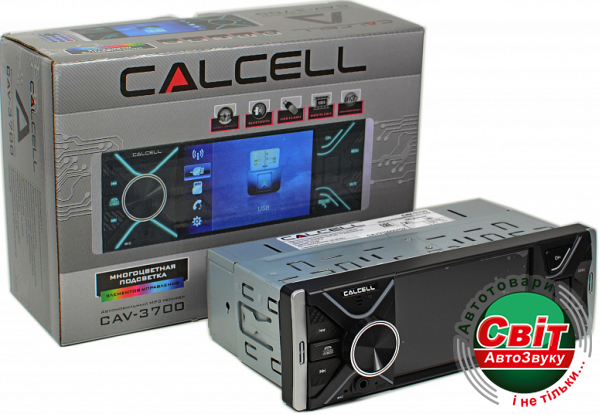 Автомагнітола Calcell CAV-3700Це бездисковое головний пристрій від бренду CALCELL, з MP5 плеєр, FM тюнером і модулем Вluetooth. Розмір установки універсальний 1DIN, підходить під багато салонів автомобіля. Фронтова панель стаціонарна із змінною підсвічуванням кнопок, можна вибрати із семи кольорів. Дана модель оснащена контрастним TFT дисплеєм високої яскравості і розміром 4,1 дюйма з роздільною здатністю 800X480. Для зручності користувача на фронтальну сторону ресівера винесені всі інтерфейси, такі як USB, SD, а також вхід AUX-роз'єм, що дозволяє підключити зовнішній пристрій.